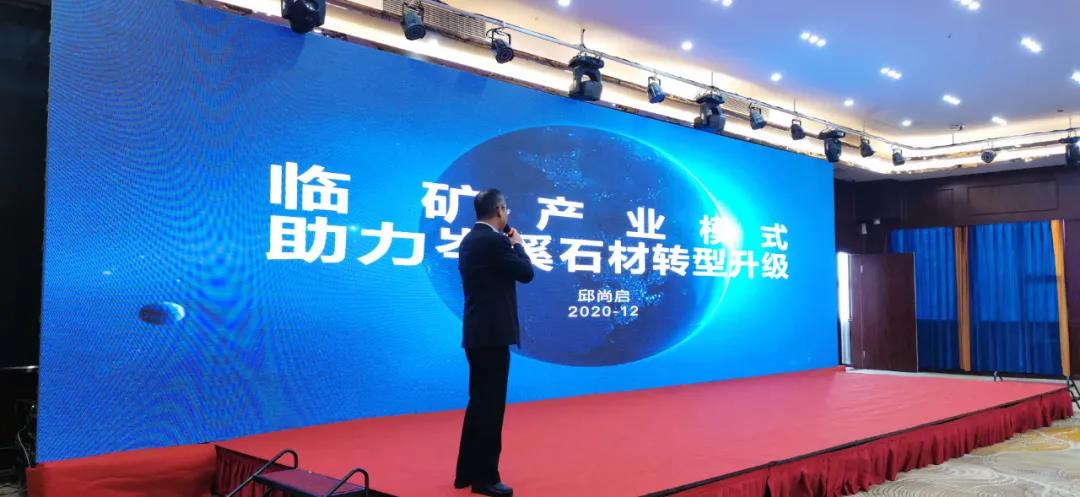 中民石材产业集团董事长邱尚启做《临矿产业模式,助力岑溪石材转型升级》专题演讲
